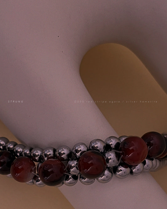 STRUNG D005 - silver hematite / red striped agate