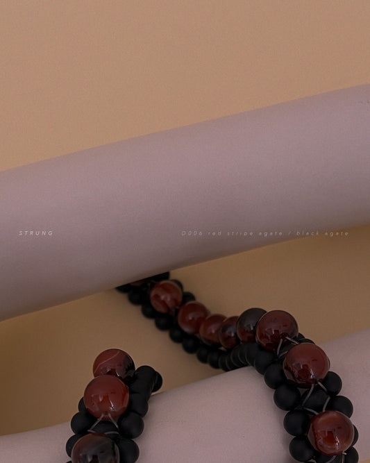 STRUNG D006 - black matte agate / red striped agate
