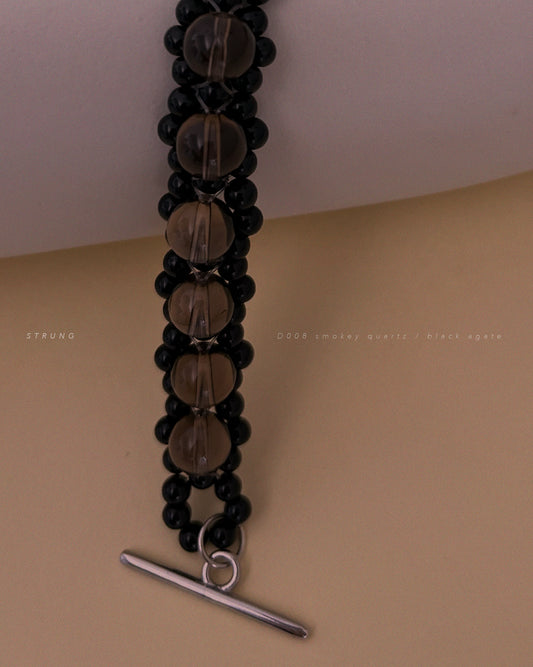 PRE-ORDER STRUNG D008 mini - black agate / smoky quartz