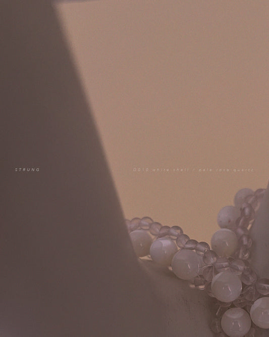 PRE-ORDER STRUNG D010 mini - pale rose quartz / white shell