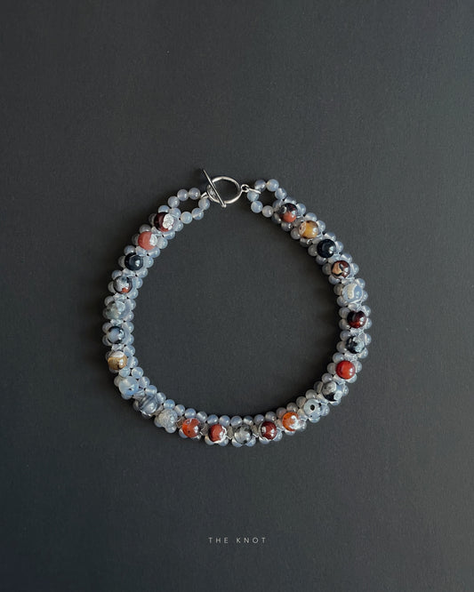 PRE-ORDER STRUNG D012 - fire lace agate / grey agate