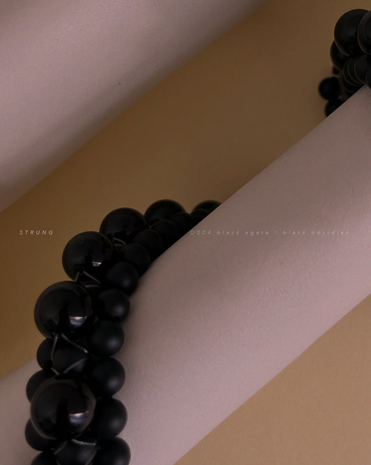 PRE-ORDER STRUNG D004 - black matte agate / black obsidian