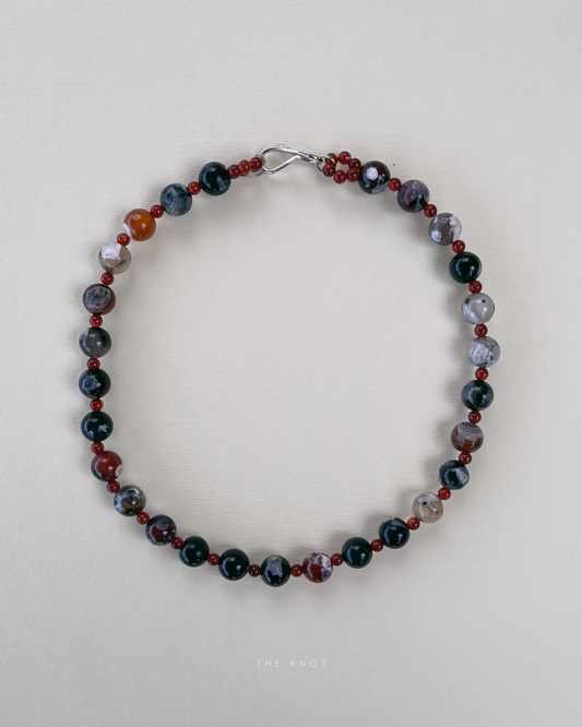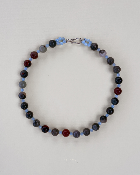 PRE-ORDER TERRA001 - bloodstone / aquamarine beaded necklace
