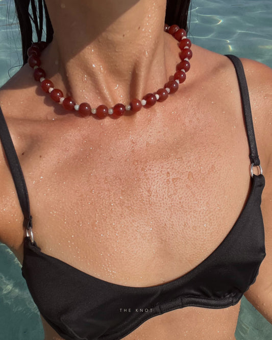 PRE-ORDER TERRA005 - fire lace agate / carnelian beaded necklace