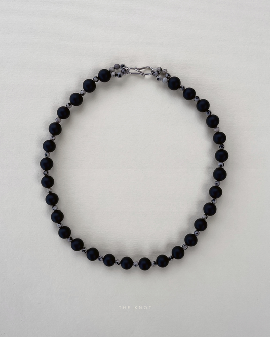 PRE-ORDER TERRA009 - black matte agate / bloodstone beaded necklace