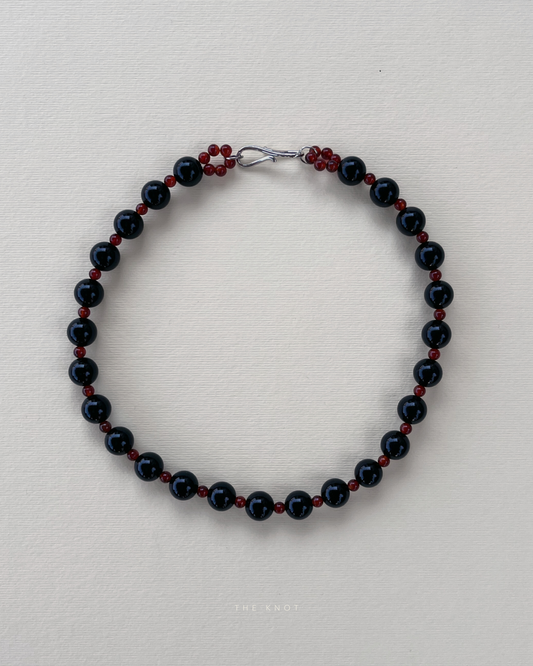 PRE-ORDER TERRA008 - obsidian / carnelian beaded necklace