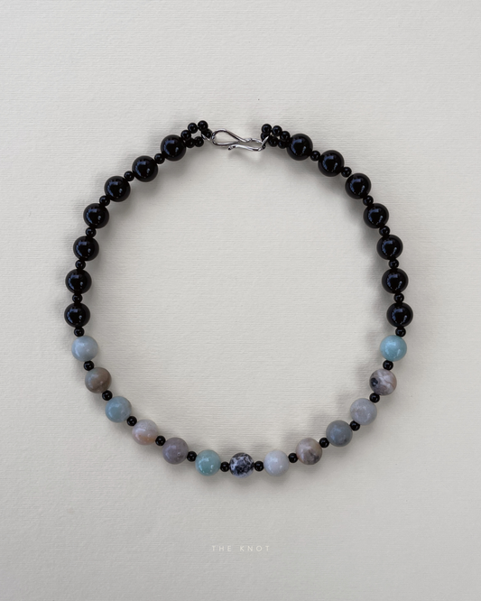 PRE-ORDER TERRA010 duo - amazonite / obsidian / onyx beaded necklace
