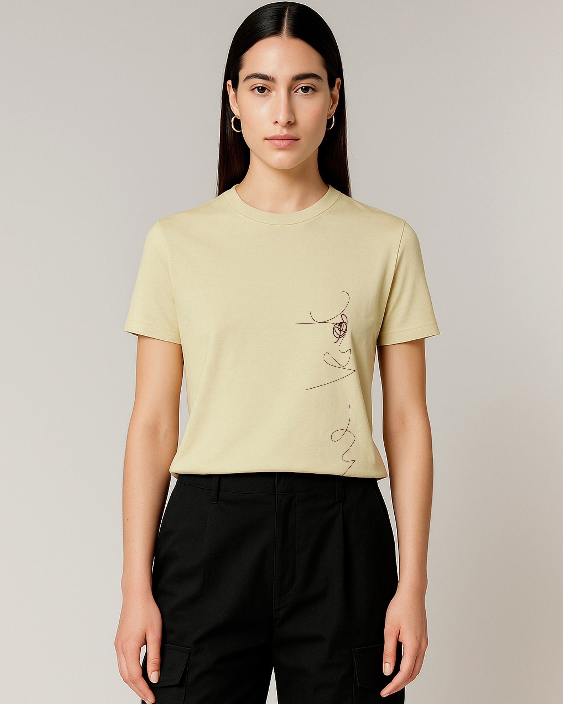 Made from lightweight 155g organic cotton, this classic-fit tee is breathable and easy to wear. Printed with water-based inks, the design stands out in quiet contrast, embracing the imperfect, the expressive and the mark of the hand.